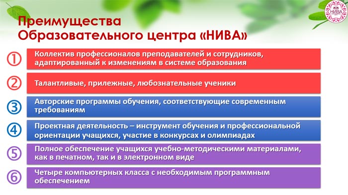 Преимущества Образовательного центра «НИВА»