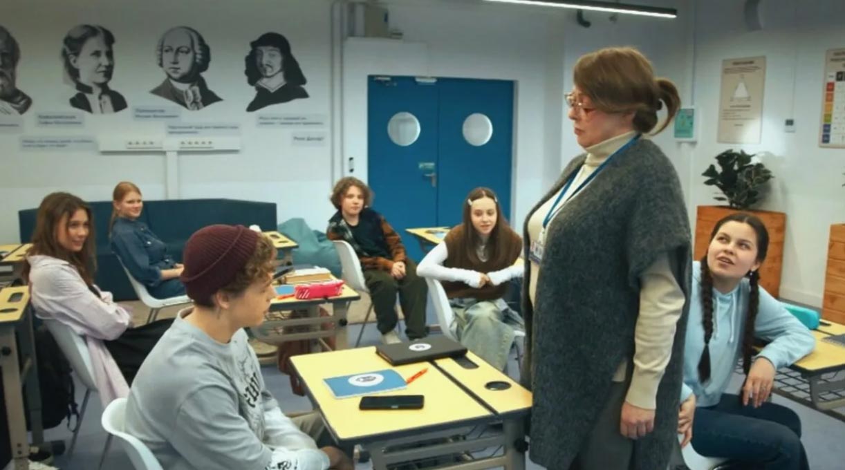 The second part of the session started with a video clip from the TV series “Олдскул”. (Summary: Mariya Trifonova is a real "old school" maths teacher, the last "Teacher of the Year of the USSR". In her classes, children are not only afraid to take out their phones, but they do not even breathe without permission. Unexpectedly, she finds herself in an elite school - all for the chance to improve relations with her only granddaughter, whom she has not seen for many years due to a conflict with her daughter. Mariya is faced with an unusual approach to teaching: freedom, technology and spoilt children from wealthy families here…)